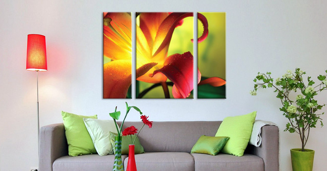Modular posters on the wall of large sizes flashed popularly, but at the moment are losing relevance compared to other options. If you decide to decorate the interior with modules, then it is worth choosing large posters on the wall. A module is a picture divided into three or more parts. The small size will not look spectacular. Flower and natural design in modular form look interesting. The colors are better to choose bright, the module should be an important accent, and not a faded spot. The inscriptions and complex images should not be decorated with a module.