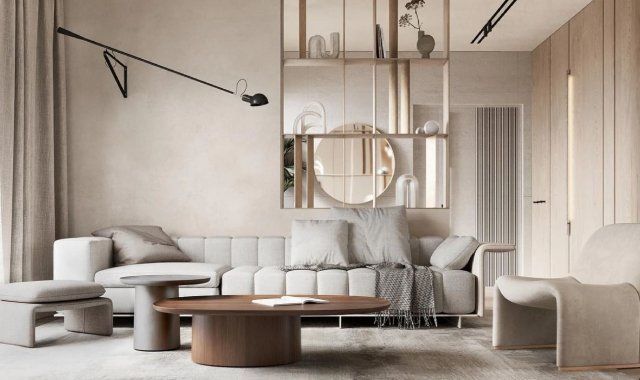 The perfect combination of upholstered and case furniture made of natural wood