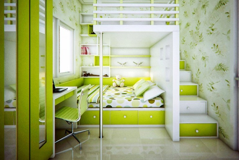 You should be a little more restrained, creating the interior of the bedroom in a light green color. You can only “dare” by painting the bedroom door with bright salad paint, or painting the walls with a light pattern of a similar color. Otherwise, do not forget that bright colors are the whole kind of energy, which needs to be treated carefully. The bedroom has enough light green bedding, paintings, photo frames or curtains.