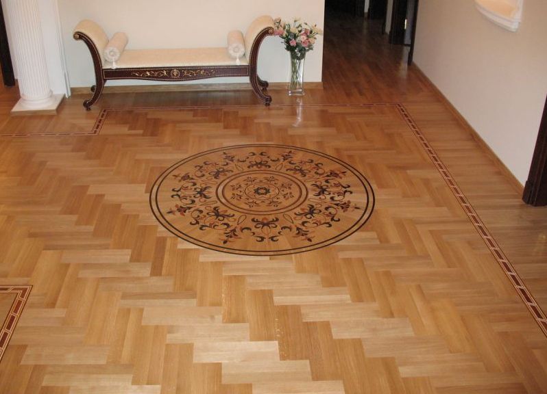 There was an opportunity to choose the size of the dies. Large boards look more expressive, and narrow boards are elegant. Different ways of laying planks make it possible to create geometric ornaments and whole artistic compositions. Instead of piece dies, ready -made modules began to be used, which consist of several lamelons mounted in shields that have an identical pattern. Of these, you can quickly arrange the ornament on the floor, the structure consists of one or two wood. As a result of the installation of the modules on the floor, a holistic picture is obtained.