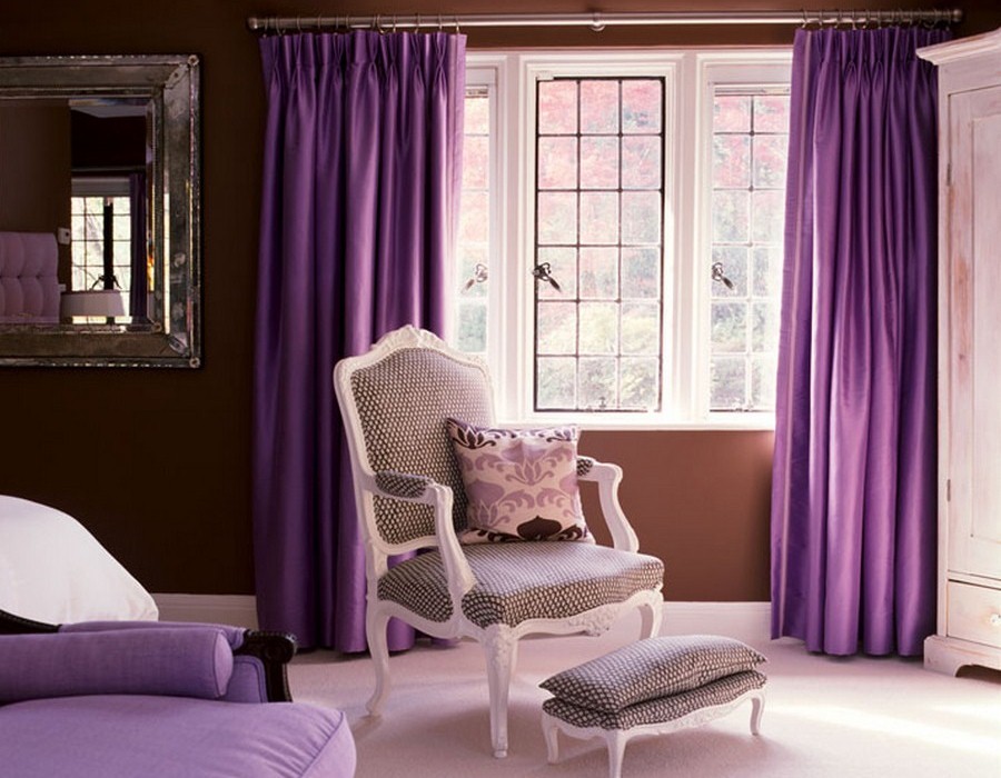 The shades of brighter should be used in the interior only in accents – for example, a purple sofa and a carpet of the same shade.