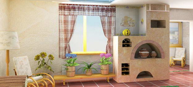 Purrender of furnaces and fireplaces is the most inexpensive and immature way, which allows you to make the surface of the furnace aesthetically attractive and carries a practical and functional load on itself.