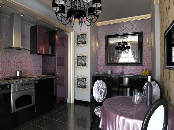 2. The classic color scheme is a combination of black and white. Black tandem with chocolate shades, silver and grayish colors are also used, less often use green, red and golden. Art deco in the interior of the kitchen often manifests itself in stripes. These stripes can be found in wall decoration when two different colors of wallpaper alternate, which completely coincide in texture. Convion can also be found in the form of vertical blinds, upholstery of furniture or other textiles.