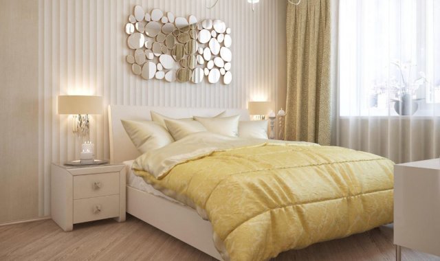 When decorating a bedroom in light colors, the finish serves as a background for furniture, decor and necessary accessories. Today, the release of one of the walls in color, pattern or texture is in fashion.