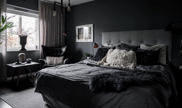 Dark bedroom is stylish