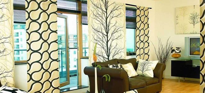 First of all, this is a wonderful addition to modern hi-tech and minimalism. It all depends on the color, pattern and combination of fabrics. In fact, such panels are made in most of the fabric, but this does not limit manufacturers. There are panels from bamboo and reeds, even rice paper and rattan. For modern solutions, panels made of thin plastic were invented.