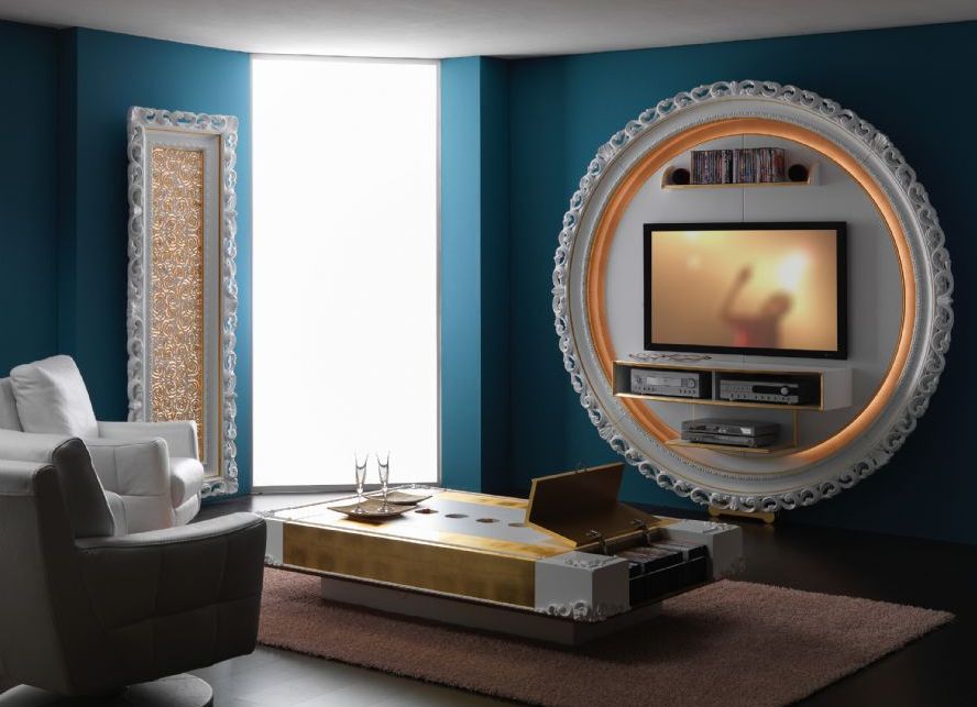 To equip the interior of the room with the TV is so that all the equipment fits well into the overall style of the room. It is no secret that in our progressive time, many apartments remain in the classic style. This is not bad. The TV in the classic interior has taken root so well that he is the most honorable resident there and stands in the most prominent place. However, the old furniture and the plasma TV in the interior are not quite stylistically suitable for each other. Often the TV is attached to the wall. Then it can be hidden behind the doors of a beautiful classic cabinet or behind a picture. If not, then you should think about how to choose the right a TV for a TV in the interior.