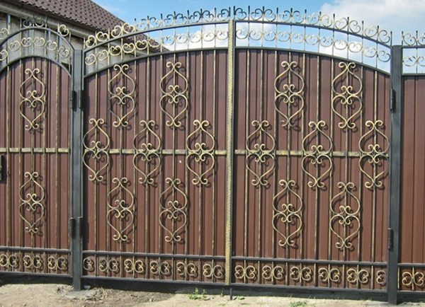 Speaking about forged gates, we mean not fully made by forging the gate, but only decorated with various wrought iron elements. The main canvas can be metal, wooden, polycarbonate. At the same time, the presence of forging elements on them in no way affects the strength characteristics of the gate, as some of us suggest.