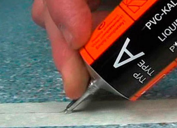 1. Cold welding type A: Applying, provided that you put fresh polyvinyl chloride linoleum. The glue that is produced “welding” has a liquid consistency, so that they can even eliminate the smallest cracks. The glue acts like this: it melts the edges of linoleum and thereby welds them, after which all joints become completely invisible.