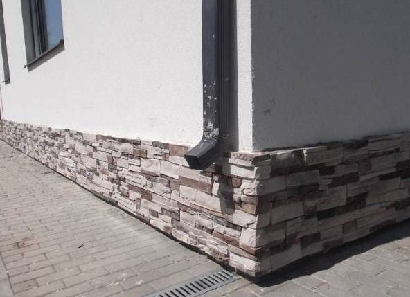 Externally, it is impossible to distinguish such a decoration from natural stone, but such a design is much cheaper than natural material. Compared to a real stone, the artificial weight has less weight, and therefore it is mounted much easier and faster. The building, the foundation of which is decorated with artificial stone, looks very impressive.