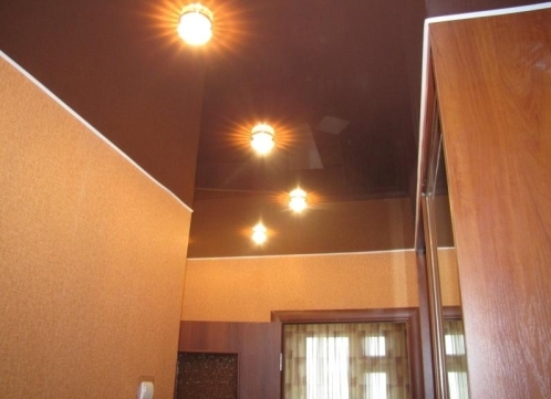 If the height of the room allows, then you can equip Two -level glossy ceilingthat will look more interesting from a design point of view.