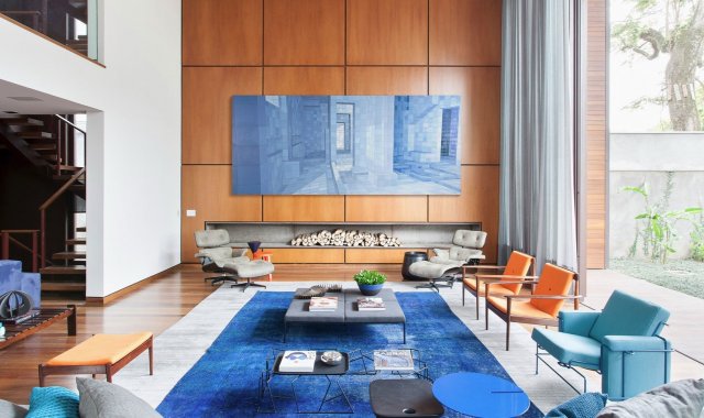 Blue looks blue in combination with natural wood and any shades of brown, as well as with genuine skin and jute.