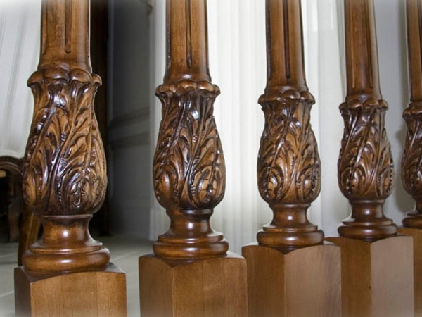 - Much more complicated is working on carved balusters made of wood for stairs. Usually this is the artistic work of the master and milling machine, transitions from one diameter to another. When such a product is produced by the company and we are talking about the serial process, the so -called copiers are used. This allows you to track the correspondence of each part.