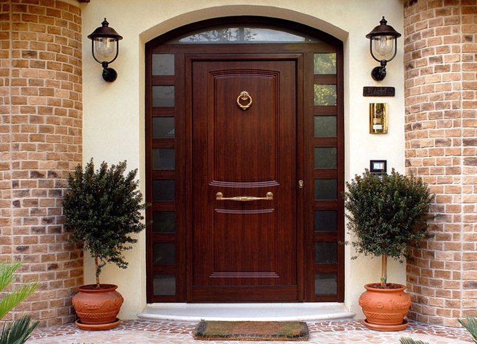 A wooden canvas, decorated with skilled decorative carvings, looks beautiful. The decoration of the exterior of the house can be the front door made of an array of red wood. You can choose a door from an array of wood painted in white or any other desired color.