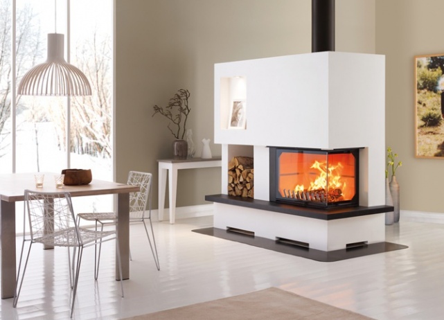 Modern fireplaces can be divided By their location – Corner, prefabricated, built -in or separately standing. Corner fireplaces have gained particular popularity in a modern apartment, which, judging by their name, are located in the corner of the room.