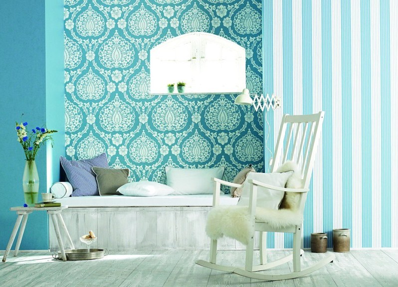 In living rooms, especially decorated in the style of neoclassicism or neo -barroacro, blue wallpapers of more saturated shades look better. In this case, wallpapers of this color will serve as an excellent background for rich finish. Blue wallpapers will fit well into the interior in the Provence style. After all, it is the blue color of the shade of a sea wave or turquoise that is characteristic of this style. But the wallpaper should be chosen not smooth, but imitating the surface of a rough linseed canvas or plaster.