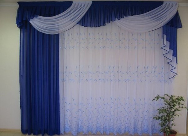 First of all, what is lambrequin. This is a kind of jewelry that closes the upper part of the curtain, and sometimes the cornice. The easiest option of lambrequin is a frill from the same fabric as the curtain itself (in this case, from the tulle). This option – a tulle with a lambrequin in the form of a frill – will look especially good in a small kitchen. Although, as a classic version, it is quite acceptable in other rooms.