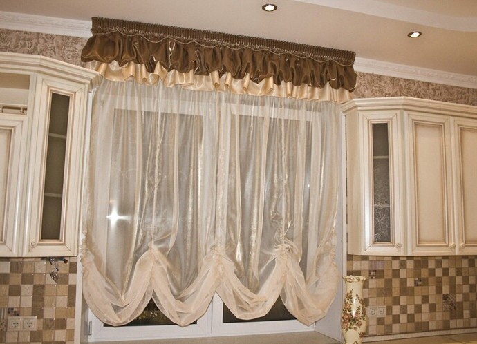 For a spacious kitchen, you can choose the original French festone curtains on the windows. Such curtains are suitable for many interior styles: classics and modern, Provence and Baroque.