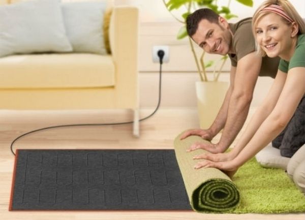 Warm rugs save our expenses, depriving us of the need to mount a warm floor. In addition, they are mobile, that is, if necessary, they can easily be moved from room to room. And they can also be hung on the wall next to the working or sleeping place, and they will replace the heater, giving heat and comfort. Thus, the floor carpet with heating can easily become wall.