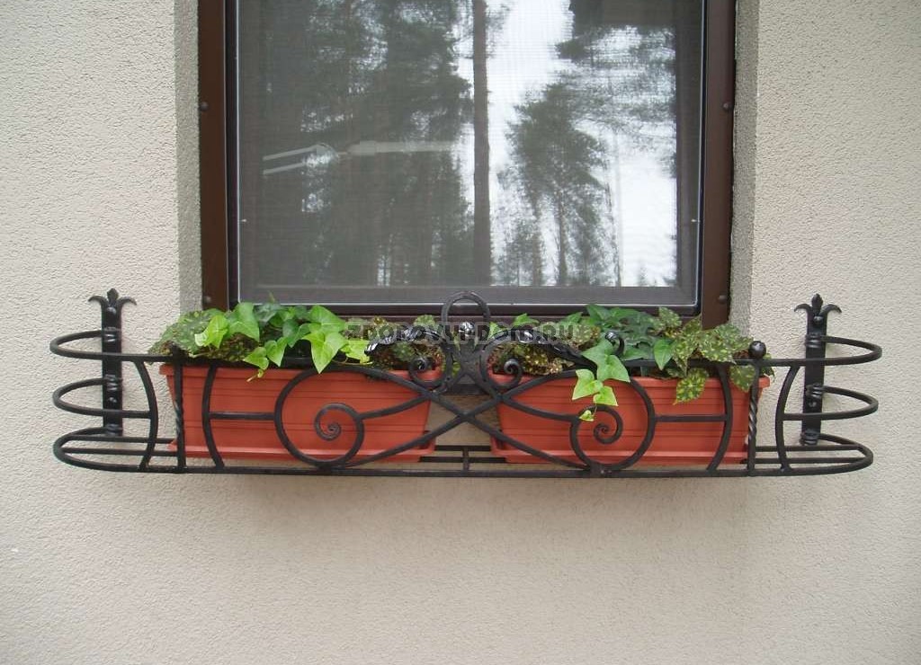 - Forged window flower beds. They will allow you to decorate the house/apartment with living plants and emphasize the beauty of window grates. These flower beds can be used for both internal and external landscaping.