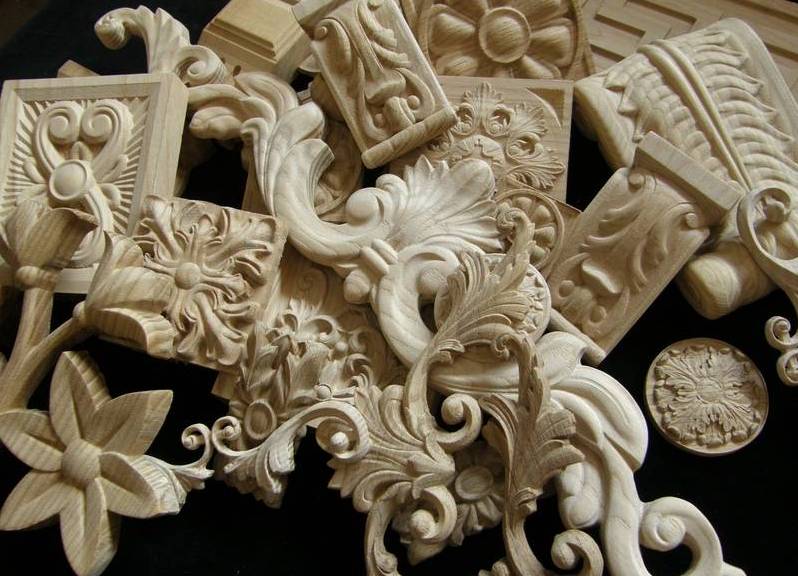 The most popular is carved wooden decor for furniture, since in addition to the function of decoration, it can also carry another load. For example, the carved legs of a table or sofa can be wooden. The patterns on such decorative elements look rich, and the structure of the wood itself is so beautiful that it does not require additional painting. It is enough to simply coat the overlays with varnish.