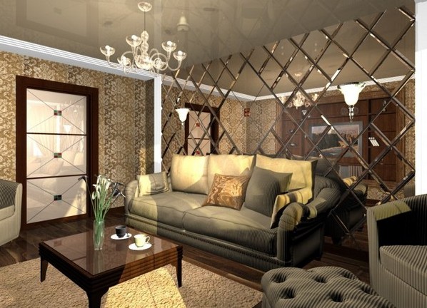 The most interesting look is the design of a panel made of mirror tiles on one of the walls of the room, since if this material occupies a large area, it can create the effect of an unwanted presence or excessive coldness of the room.
