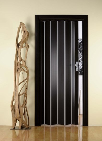 The accordion door is easy to transport, since its leaf is supplied folded. Such a door will not suit every type of interior (for example, in a room decorated in a classic style, it will not look very appropriate), but if you get the style right, you can give your home greater originality and practicality.