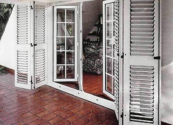 Sliding doors have become increasingly popular lately. Including louvered doors. Louvered sliding doors have the form of shutters covered with slats. These doors move apart, hide behind each other or enter the space between the walls.