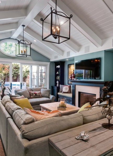 Ceiling chandeliers can be of a wide variety of shapes – round, square, irregular. They are made from a variety of materials – glass, crystal, metal, wire. In addition, they can be built into special panels. Such a wide selection allows you to be sure that you will find the very model that will certainly suit the modern living room in your home.