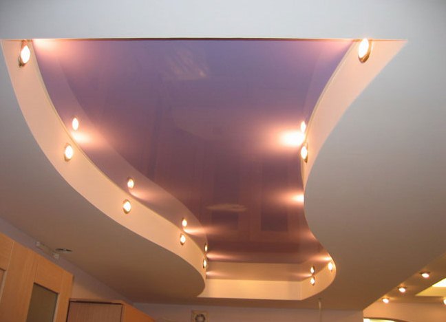Both suspended ceilings and plasterboard can be made multi-level, avoiding the standard flat surface. This will bring a special zest and originality to the interior. A film ceiling can be glossy or matte, but a plasterboard ceiling can be painted in various colors, which will help it fit perfectly into the chosen interior style.