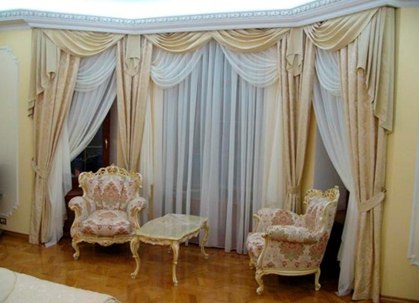 7. Varieties of plastic ceiling structures is a flexible cornice for bay windows. This console is made of high-strength elastic plastic. These models of cornices are distinguished by a stylish European design. They are easy to install on bay windows of any shape. Some models of ceiling cornices are equipped with rotating elements. This ceiling cornice with a turn allows you to hang the curtain close to the wall.