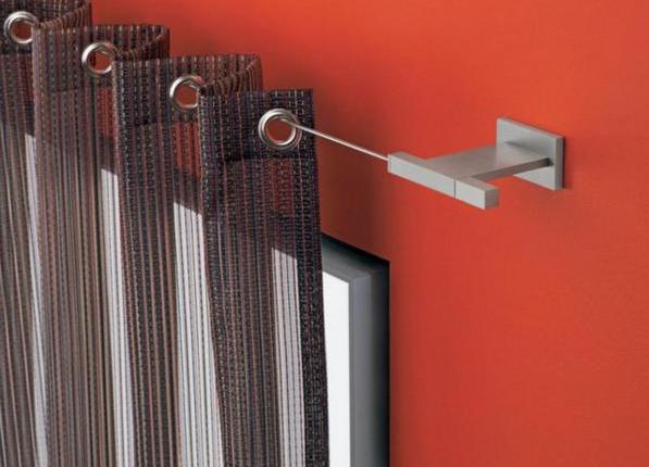 The basis of the string cornice design is a thin steel cable, similar to a guitar string. Such cornices are available for wall and ceiling. They are fastened using small brackets that resemble brackets, between which a cable is stretched. The length of the string in different models of cornices ranges from two to five meters. In this case, the string can be attached in one, two or even three rows. Curtains or curtains are attached to the string cornice using special clips or hooks.