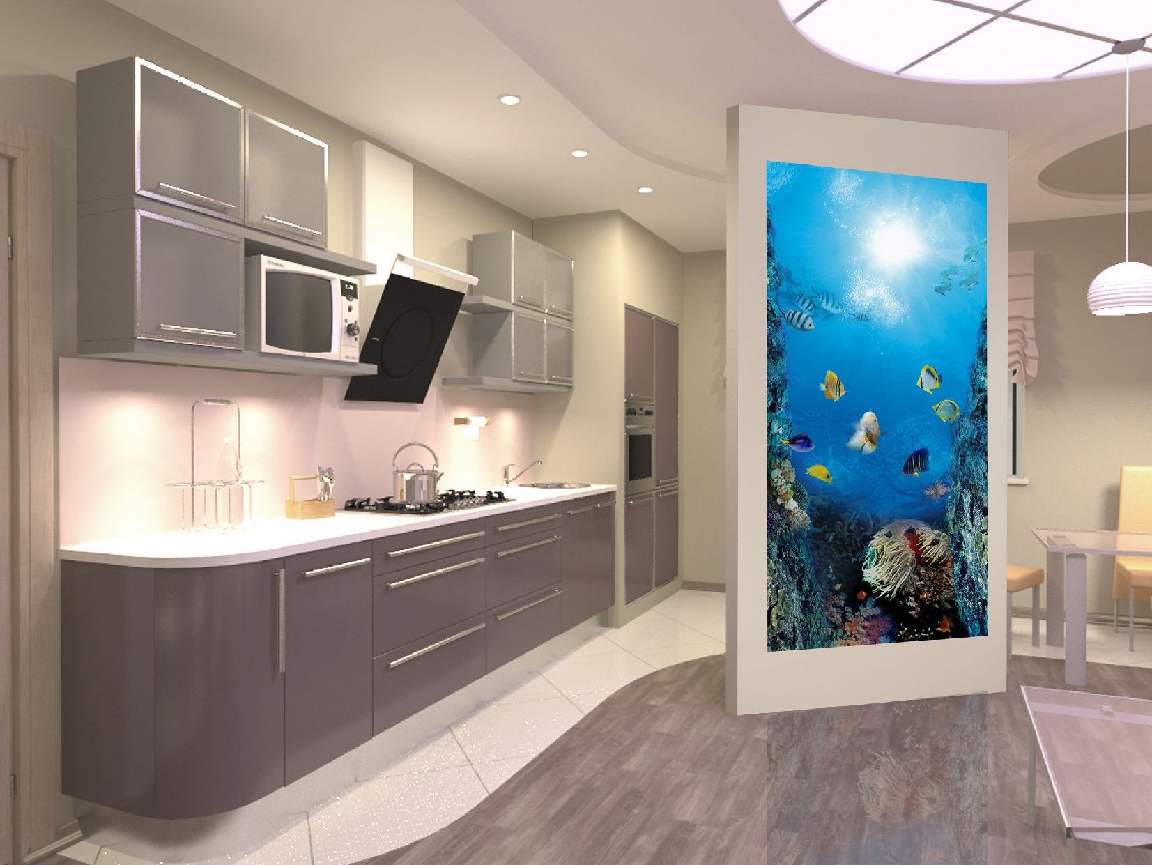 A huge role is given to accessories that decorate the room and at the same time complement the photo wallpaper. These can be shells, sea pebbles, models of sea vessels from various historical periods. A great idea would be to purchase an aquarium.
