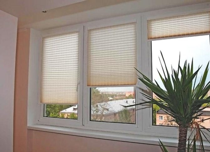 Pleated blinds installed on a plastic window will perfectly decorate your room, bringing lightness and airiness to its interior.