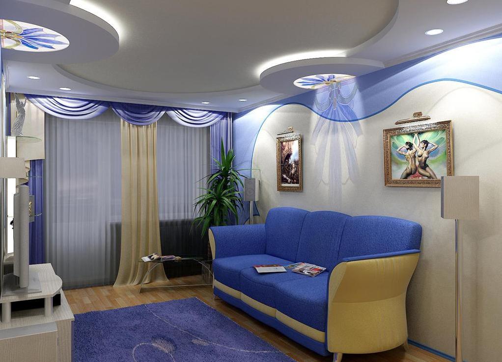 Suspended ceilings made of plasterboard have long been popular among those who are undertaking renovations in an apartment. Especially if it is carried out independently, since with the help of drywall it is easy to level out all the flaws in the ceiling, which is difficult to achieve with plaster. In addition, such a ceiling can be installed independently, in contrast to the complex process of installing a stretch ceiling. And in terms of design, when using a plasterboard ceiling, you can make any niches and projections, thus zoning the room and giving it your own unique design.