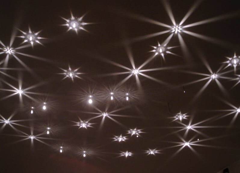 The simplest and most common solution is spotlights for suspended ceilings. They are easy to install and look great. They can be built in a variety of ways – from the perimeter to the “snake”.