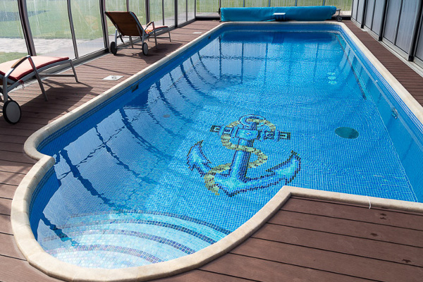 - After laying the mosaic for the pool, at least two weeks should pass. After this period, you can collect water.